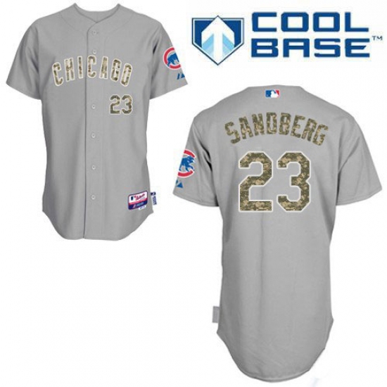 Men's Majestic Chicago Cubs #23 Ryne Sandberg Replica Grey USMC Cool Base MLB Jersey
