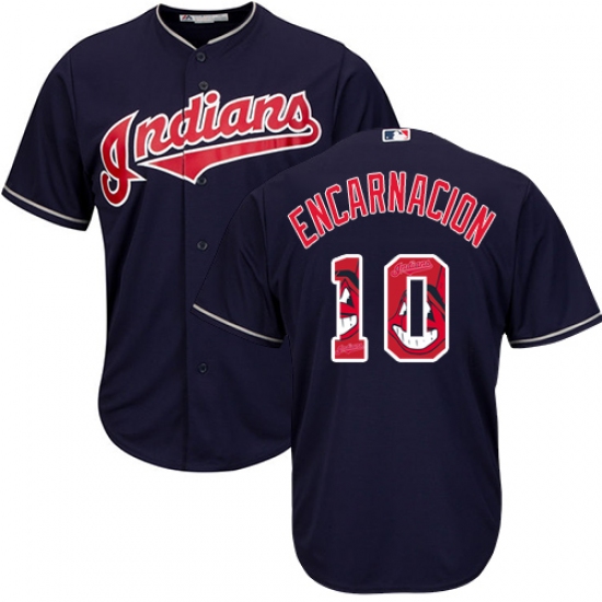 Home>MLB>Cleveland Indians>Edwin Encarnacion>Men's Majestic Cleveland Indians #10 Edwin Encarnacion Authentic Navy Blue Team Logo Fashion Cool Base MLB Jersey