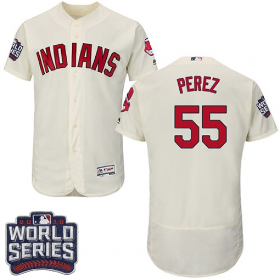 Men's Majestic Cleveland Indians #55 Roberto Perez Cream 2016 World Series Bound Flexbase Authentic Collection MLB Jersey