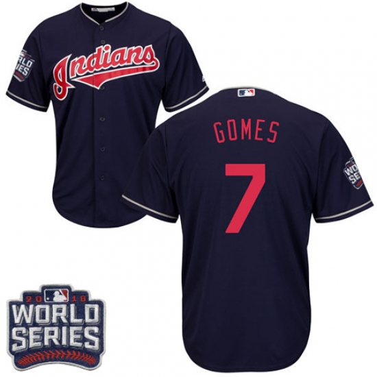 Home>MLB>Cleveland Indians>Yan Gomes>Men's Majestic Cleveland Indians #7 Yan Gomes Navy Blue 2016 World Series Bound Flexbase Authentic Collection MLB Jersey