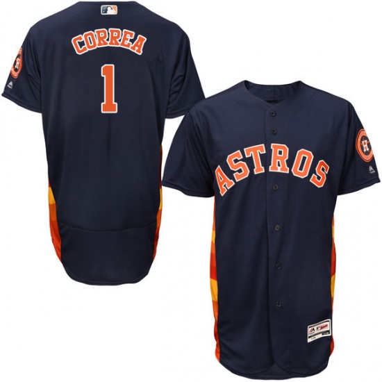 Men's Majestic Houston Astros #1 Carlos Correa Navy Blue Alternate Flex Base Authentic Collection MLB Jersey