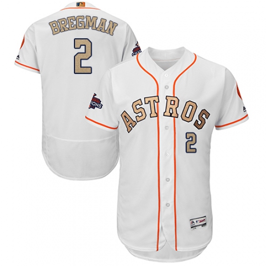 Men's Majestic Houston Astros #2 Alex Bregman White 2018 Gold Program Flex Base Authentic Collection MLB Jersey