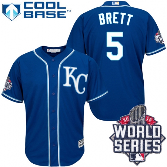 Men's Majestic Kansas City Royals #5 George Brett Replica Blue Alternate 2 Cool Base 2015 World Series Patch MLB Jersey