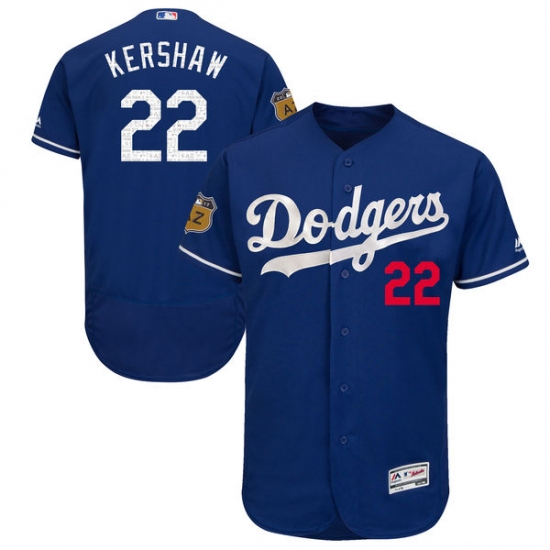 Home>MLB>Los Angeles Dodgers>Clayton Kershaw>Men's Majestic Los Angeles Dodgers #22 Clayton Kershaw Royal Blue 2017 Spring Training Authentic Collection Flex Base MLB Jersey