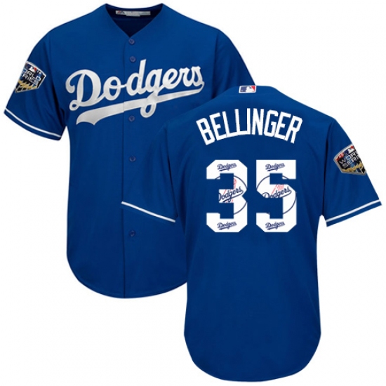 Men's Majestic Los Angeles Dodgers #35 Cody Bellinger Authentic Royal Blue Team Logo Fashion Cool Base 2018 World Series MLB Jersey