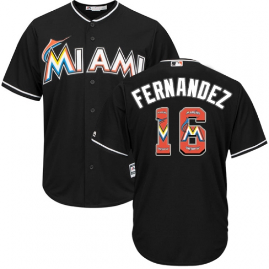 Home>MLB>Miami Marlins>Jose Fernandez>Men's Majestic Miami Marlins #16 Jose Fernandez Authentic Black Team Logo Fashion Cool Base MLB Jersey