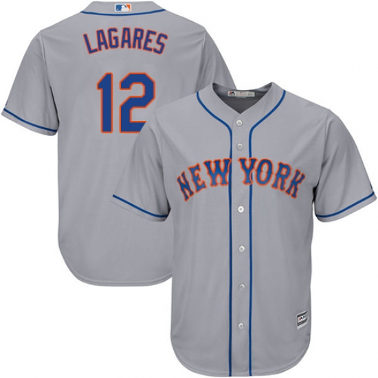 Home>MLB>New York Mets>Juan Lagares>Men's Majestic New York Mets #12 Juan Lagares Replica Grey Road Cool Base MLB Jersey