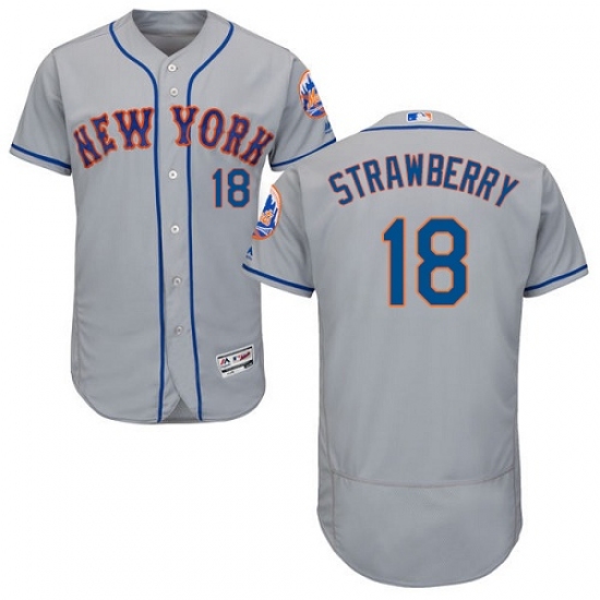 Home>MLB>New York Mets>Darryl Strawberry>Men's Majestic New York Mets #18 Darryl Strawberry Grey Road Flex Base Authentic Collection MLB Jersey