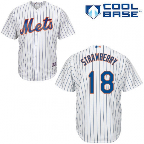 Home>MLB>New York Mets>Darryl Strawberry>Men's Majestic New York Mets #18 Darryl Strawberry Replica White Home Cool Base MLB Jersey