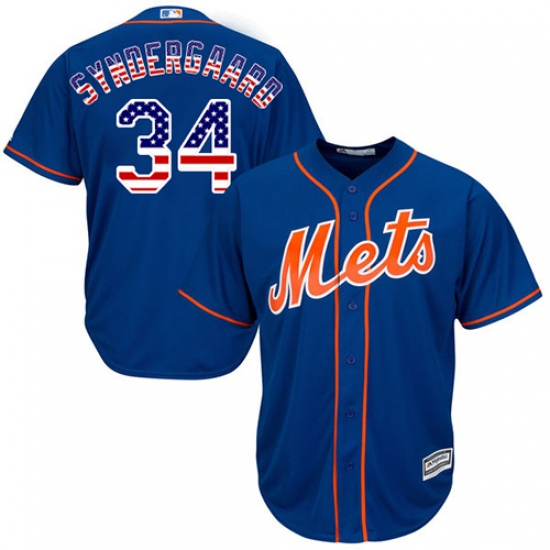Home>MLB>New York Mets>Noah Syndergaard>Men's Majestic New York Mets #34 Noah Syndergaard Authentic Royal Blue USA Flag Fashion MLB Jersey