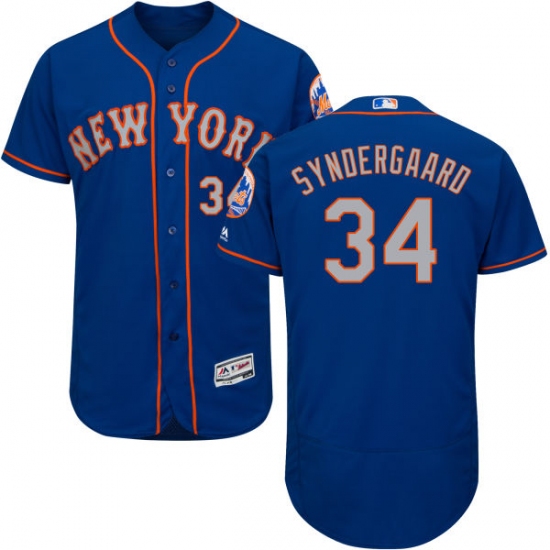 Home>MLB>New York Mets>Noah Syndergaard>Men's Majestic New York Mets #34 Noah Syndergaard Royal/Gray Alternate Flex Base Authentic Collection MLB Jersey