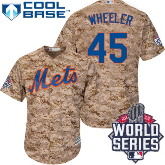 Men's Majestic New York Mets #45 Zack Wheeler Authentic Camo Alternate Cool Base 2015 World Series MLB Jersey
