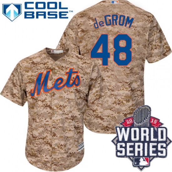 Men's Majestic New York Mets #48 Jacob deGrom Replica Camo Alternate Cool Base 2015 World Series MLB Jersey