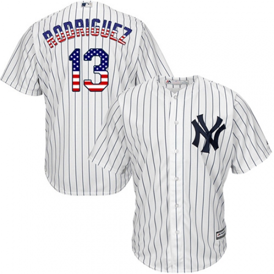 Home>MLB>New York Yankees>Alex Rodriguez>Men's Majestic New York Yankees #13 Alex Rodriguez Replica White USA Flag Fashion MLB Jersey