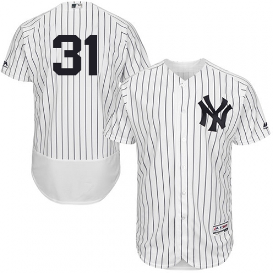 Men's Majestic New York Yankees #31 Aaron Hicks White/Navy Flexbase Authentic Collection MLB Jersey
