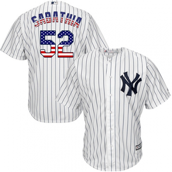 Home>MLB>New York Yankees>C.C. Sabathia>Men's Majestic New York Yankees #52 C.C. Sabathia Authentic White USA Flag Fashion MLB Jersey