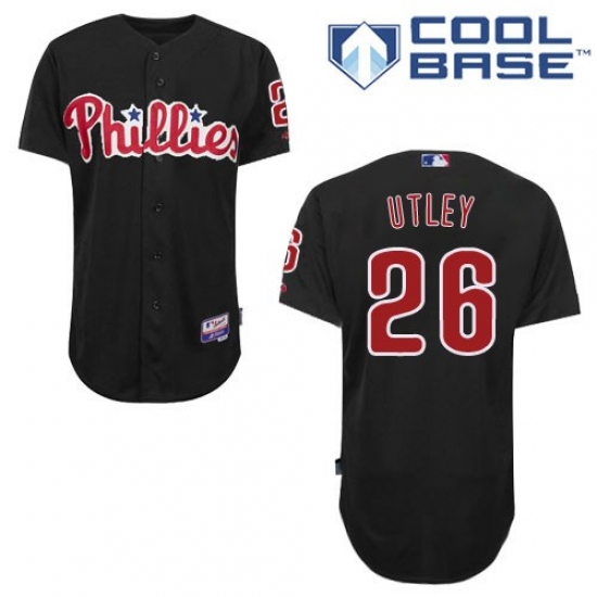 Men's Majestic Philadelphia Phillies #26 Chase Utley Replica Black Cool Base MLB Jersey