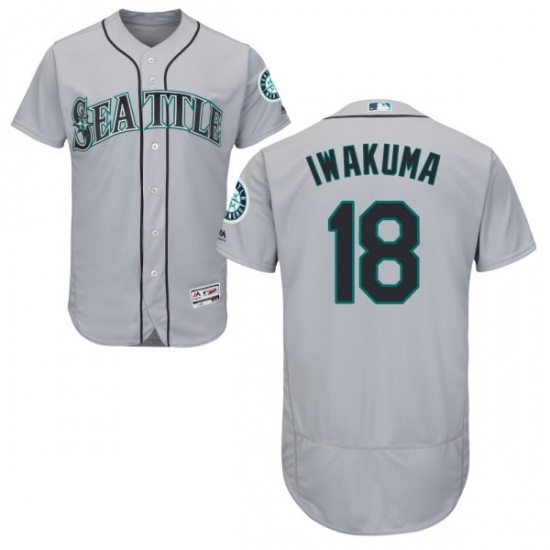 Home>MLB>Seattle Mariners>Hisashi Iwakuma>Men's Majestic Seattle Mariners #18 Hisashi Iwakuma Grey Road Flex Base Authentic Collection MLB Jersey
