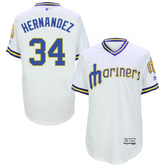 Men's Majestic Seattle Mariners #34 Felix Hernandez White Flexbase Authentic Collection Cooperstown MLB Jersey