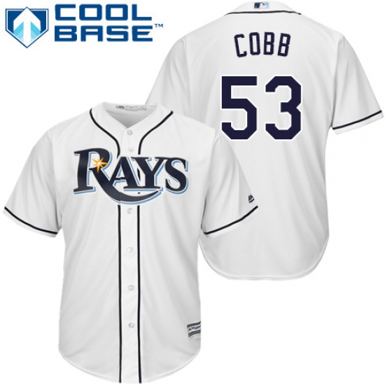 Home>MLB>Tampa Bay Rays>Alex Cobb>Men's Majestic Tampa Bay Rays #53 Alex Cobb Replica White Home Cool Base MLB Jersey