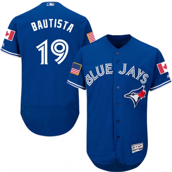 Home>MLB>Toronto Blue Jays>Jose Bautista>Men's Majestic Toronto Blue Jays #19 Jose Bautista Authentic Royal Blue Fashion Stars & Stripes Flex Base MLB Jersey
