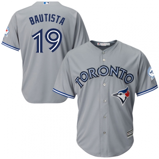 Men's Majestic Toronto Blue Jays #19 Jose Bautista Replica Grey Road 40th Anniversary Patch MLB Jersey