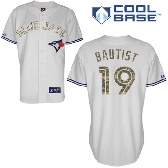 Home>MLB>Toronto Blue Jays>Jose Bautista>Men's Majestic Toronto Blue Jays #19 Jose Bautista Replica Grey USMC Cool Base MLB Jersey