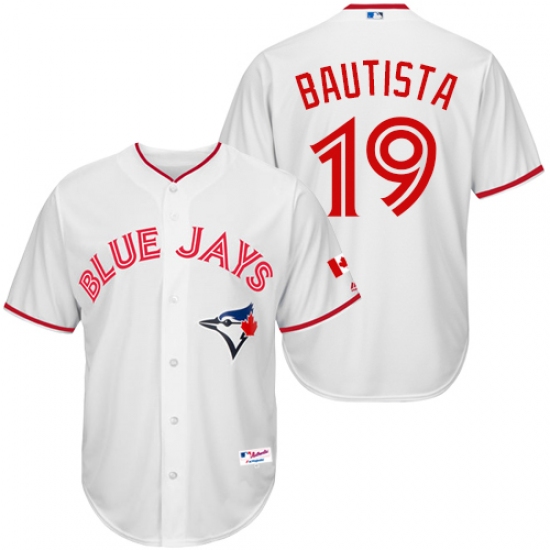 Men's Majestic Toronto Blue Jays #19 Jose Bautista Replica White 2015 Canada Day MLB Jersey