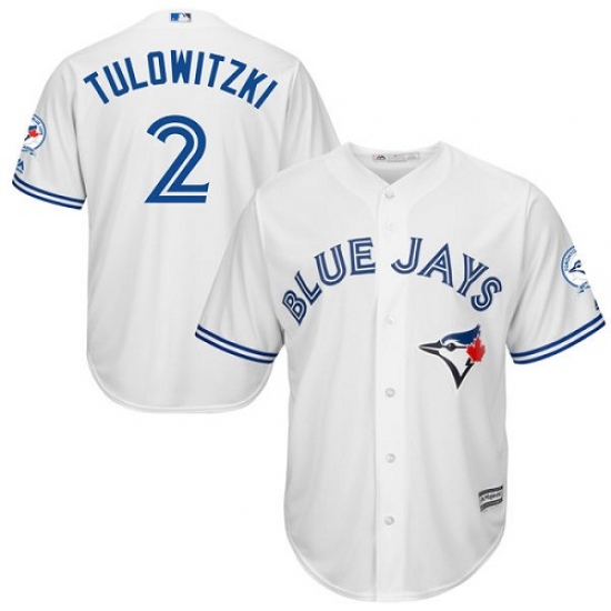 Home>MLB>Toronto Blue Jays>Troy Tulowitzki>Men's Majestic Toronto Blue Jays #2 Troy Tulowitzki Replica White Home 40th Anniversary Patch MLB Jersey