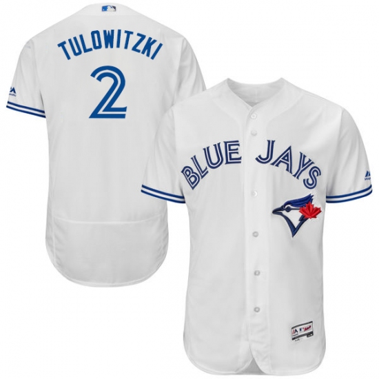 Men's Majestic Toronto Blue Jays #2 Troy Tulowitzki White Home Flex Base Authentic Collection MLB Jersey