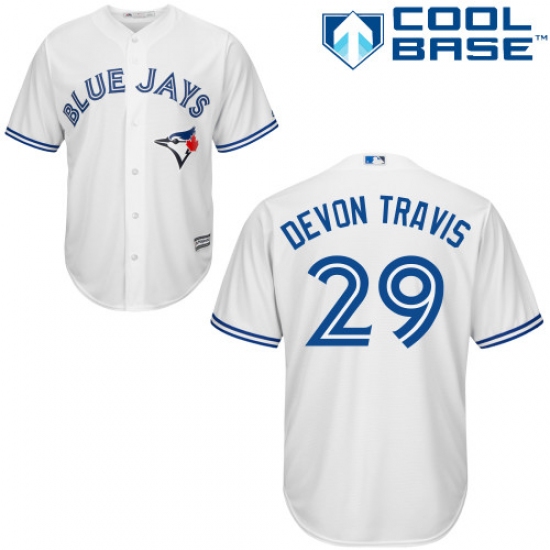 Home>MLB>Toronto Blue Jays>Devon Travis>Men's Majestic Toronto Blue Jays #29 Devon Travis Replica White Home MLB Jersey