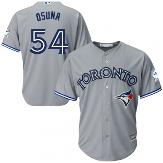 Home>MLB>Toronto Blue Jays>Roberto Osuna>Men's Majestic Toronto Blue Jays #54 Roberto Osuna Replica Grey Road 40th Anniversary Patch MLB Jersey