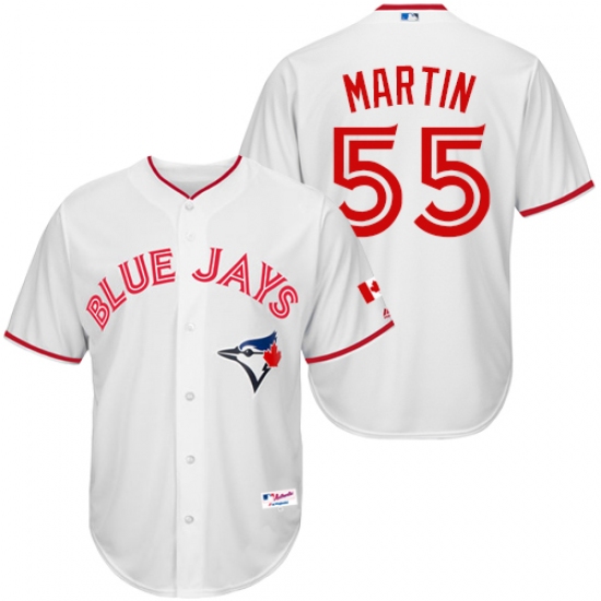 Home>MLB>Toronto Blue Jays>Russell Martin>Men's Majestic Toronto Blue Jays #55 Russell Martin Replica White 2015 Canada Day MLB Jersey