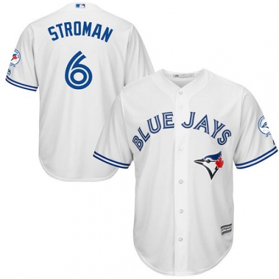 Home>MLB>Toronto Blue Jays>Marcus Stroman>Men's Majestic Toronto Blue Jays #6 Marcus Stroman Replica White Home 40th Anniversary Patch MLB Jersey
