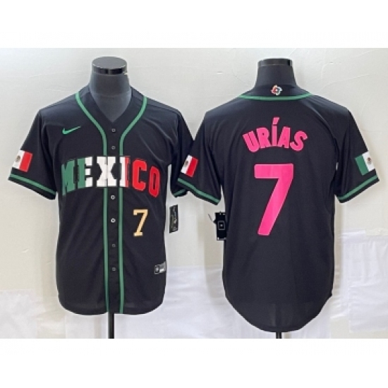 >Men's Mexico Baseball #7 Julio Urias Number 2023 Black World Baseball Classic Stitched Jersey3