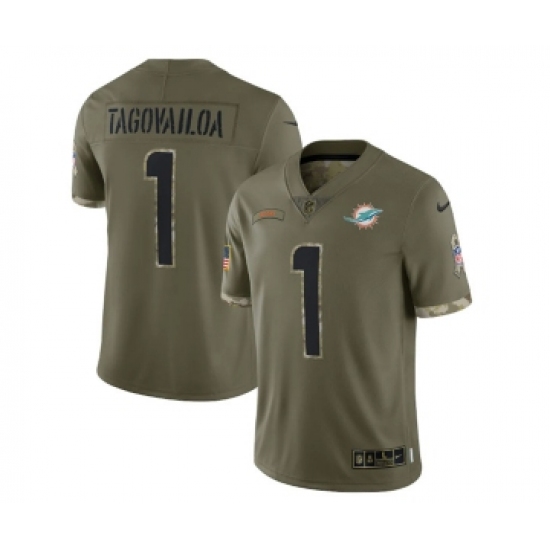 Men's Miami Dolphins #1 Tua Tagovailoa 2022 Olive Salute To Service Limited Stitched Jersey