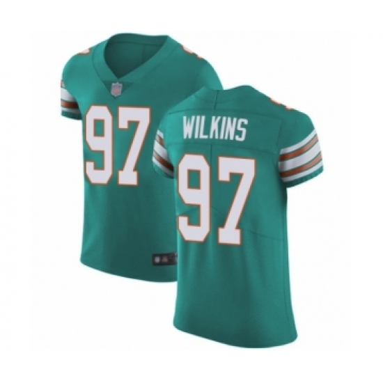 >Men's Miami Dolphins #97 Christian Wilkins Aqua Green Alternate Vapor Untouchable Elite Player Football Jersey