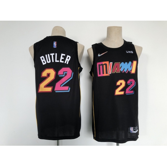 Men's Miami Heat 2021-22 City Edition #22 Jimmy Butler Black Stitched Basketball Jersey