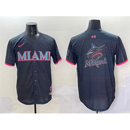 >Men's Miami Marlins Team Big Logo Black 2025 City Connect Limited Stitched Baseball Jersey