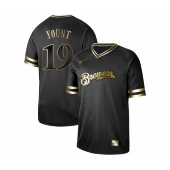 Men's Milwaukee Brewers #19 Robin Yount Authentic Black Gold Fashion Baseball Jersey