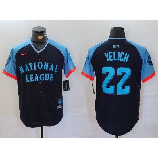 Men's Milwaukee Brewers #22 Christian Yelich Navy 2024 All Star Limited Stitched Jersey