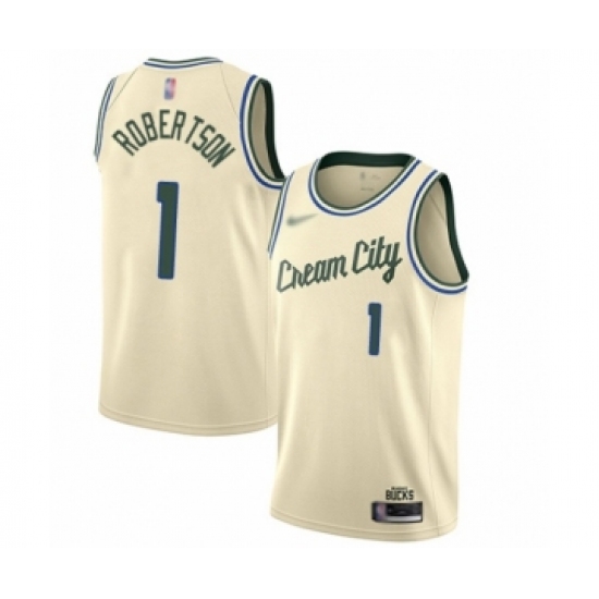 >Men's Milwaukee Bucks #1 Oscar Robertson Swingman Cream Basketball Jersey - 2019 20 City Edition