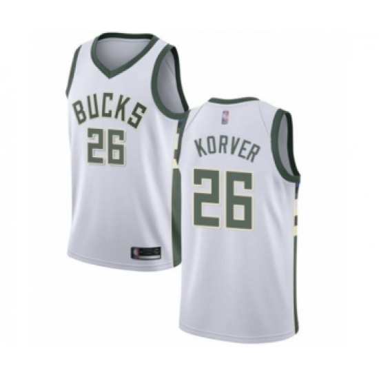 >Men's Milwaukee Bucks #26 Kyle Korver Authentic White Basketball Jersey - Association Edition