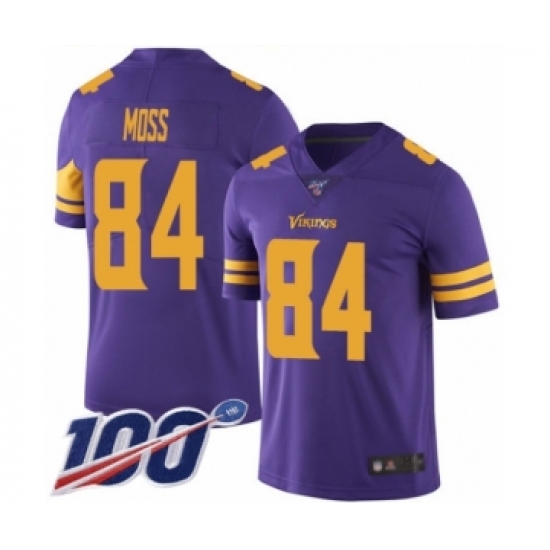 >Men's Minnesota Vikings #84 Randy Moss Limited Purple Rush Vapor Untouchable 100th Season Football Jersey