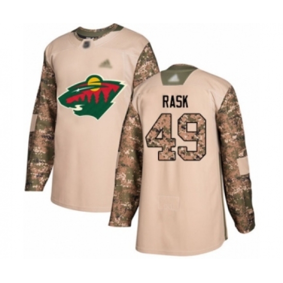 >Men's Minnesota Wild #49 Victor Rask Authentic Camo Veterans Day Practice Hockey Jersey