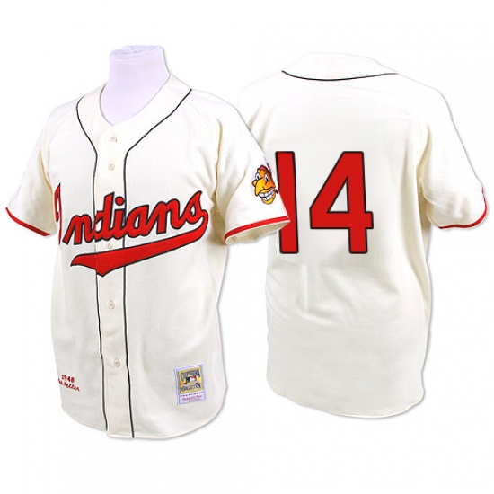 Men's Mitchell and Ness 1948 Cleveland Indians #14 Larry Doby Authentic Cream Throwback MLB Jersey