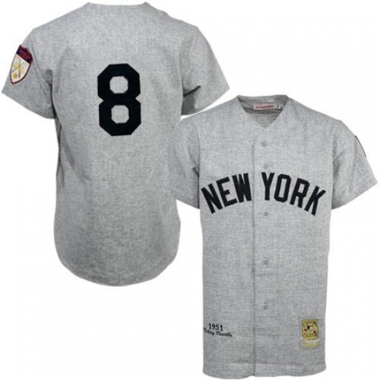 Men's Mitchell and Ness 1951 New York Yankees #8 Yogi Berra Authentic Grey Throwback MLB Jersey