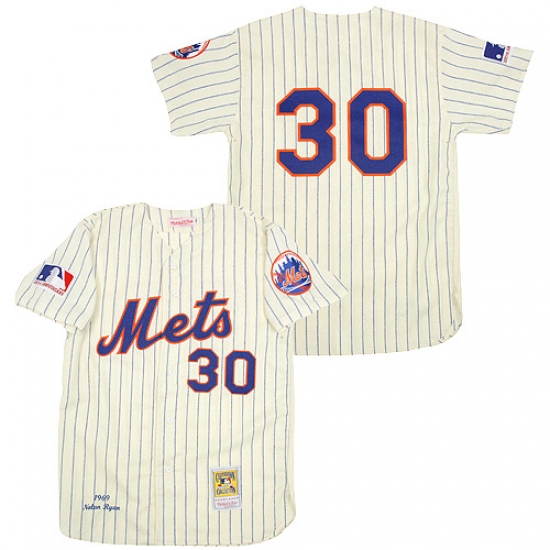 Men's Mitchell and Ness 1969 New York Mets #30 Nolan Ryan Authentic Cream Throwback MLB Jersey