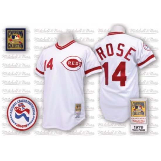 Men's Mitchell and Ness Cincinnati Reds #14 Pete Rose Authentic White Throwback MLB Jersey