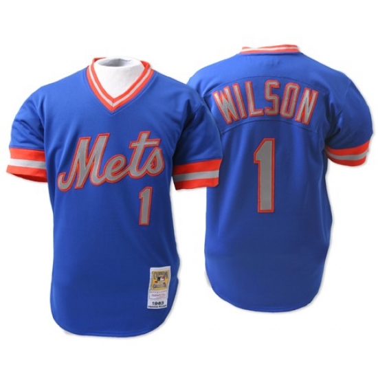 Men's Mitchell and Ness New York Mets #1 Mookie Wilson Authentic Blue Throwback MLB Jersey